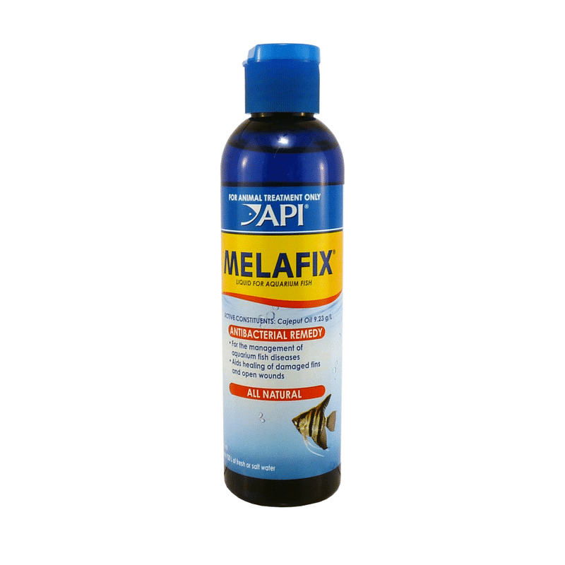 API MELAFIX fish remedy is an all-natural antibacterial treatment that works to treat infections in fish. Common bacterial infections are open wounds and abrasions, tail rot, eye cloud, and mouth fungus.