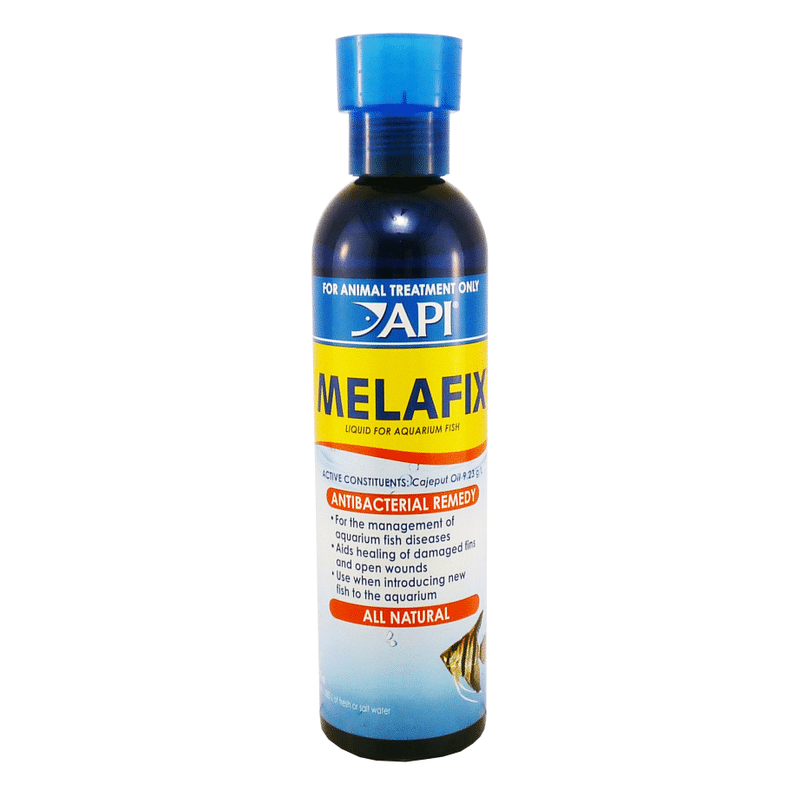 API MELAFIX fish remedy is an all-natural antibacterial treatment that works to treat infections in fish. Common bacterial infections are open wounds and abrasions, tail rot, eye cloud, and mouth fungus.