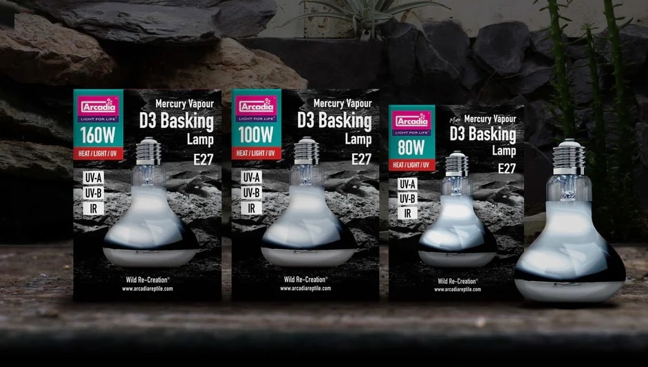 The 80 Watt ‘Mini Mercury Vapour’ is a useful option for smaller vivaria. UVB and a balanced UVA similar to wild exposure at lower fitting heights and also produce a good amount of heat.