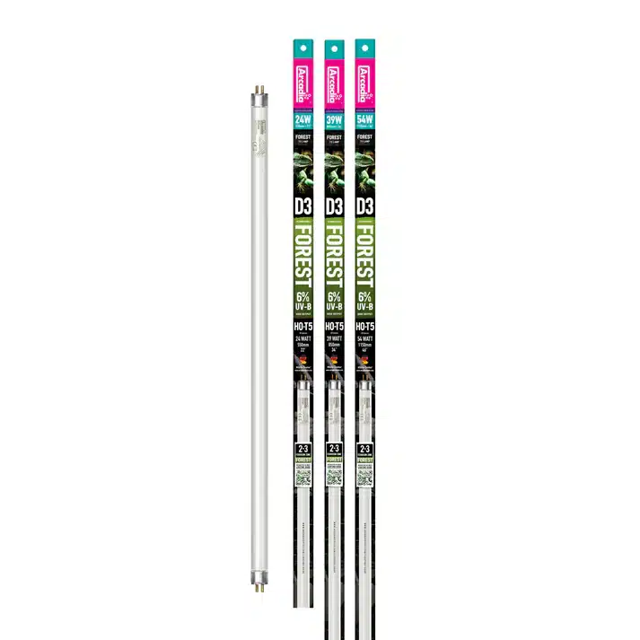 The Arcadia Forest 6% UVB T5 tubes are suitable for reptile species which do not require high levels of UVB, or are exposed to close proximity to the tube. Species which these are suitable for are Water dragons and selected turtle species.