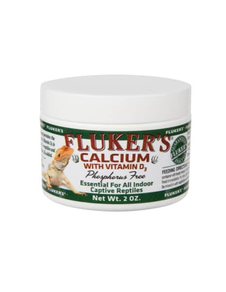 Flukers Calcium with Vitamin D3 is preferable for reptile and amphibians that are kept indoors to aid the absorption of calcium.