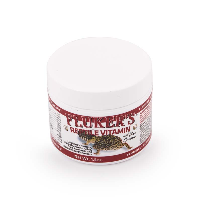 Fluker’s Reptile Vitamin with Beta Carotene is a powder supplement with essential vitamins, minerals, amino acids and trace elements to help support a longer, healthier life for all reptiles. Reptile Vitamin also contains potent color enhancers to boost your pets natural, vibrant colors. Ingredients Dibasic calcium phosphate, kelp flour, oyster shell flour, calcium carbonate, bone ash, L-glutamic acid, L-aspartic acid, L-leucine, iron sulfate, beta carotene, L-valine, L-sarine, choline chloride, L-lysine, L-alanine, L-phenyfalanine, L-arginine, L-isoleucine, canthaxanthin, _lthereoline, L-tyrosine, L-proline, L-methionine, glycine, L-cystine, niacin, L-histindine, potassium chlorine, ascorbic acid, inositol, L-tryptophan, manganese sulfate, sodium chloride, zinc sulfate, thiamine mononitrate, para-aminobenzoic acid, pyridoxine hydrochloride, apo-carotenal, rutin, vitamin B-12 supplement, magnesium oxide, copper sulfate, riboflavin, calcium pantothenate, dl-alpha tocopherul acetate, vitamin A acetate, sulfur, calcium iodate, folic acid, hesperidin, bioflavinoids, D-activated animal sterol (source of Vitamin D-3), D-biotin, menadione dimethylpyrimidinol bisulfite
