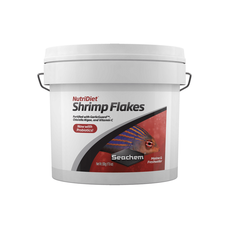 Also included in Shrimp Flakes is Seachem GarlicGuard as an attractant and appetite stimulant. Vitamin C is an especially important factor in the growth and health of aquatic animals, and is present in high levels in NutriDiet® Shrimp Flakes. This vitamin is a cofactor in the processes necessary for the formation of connective tissue, scar tissue in wound repair, and bone matrix.