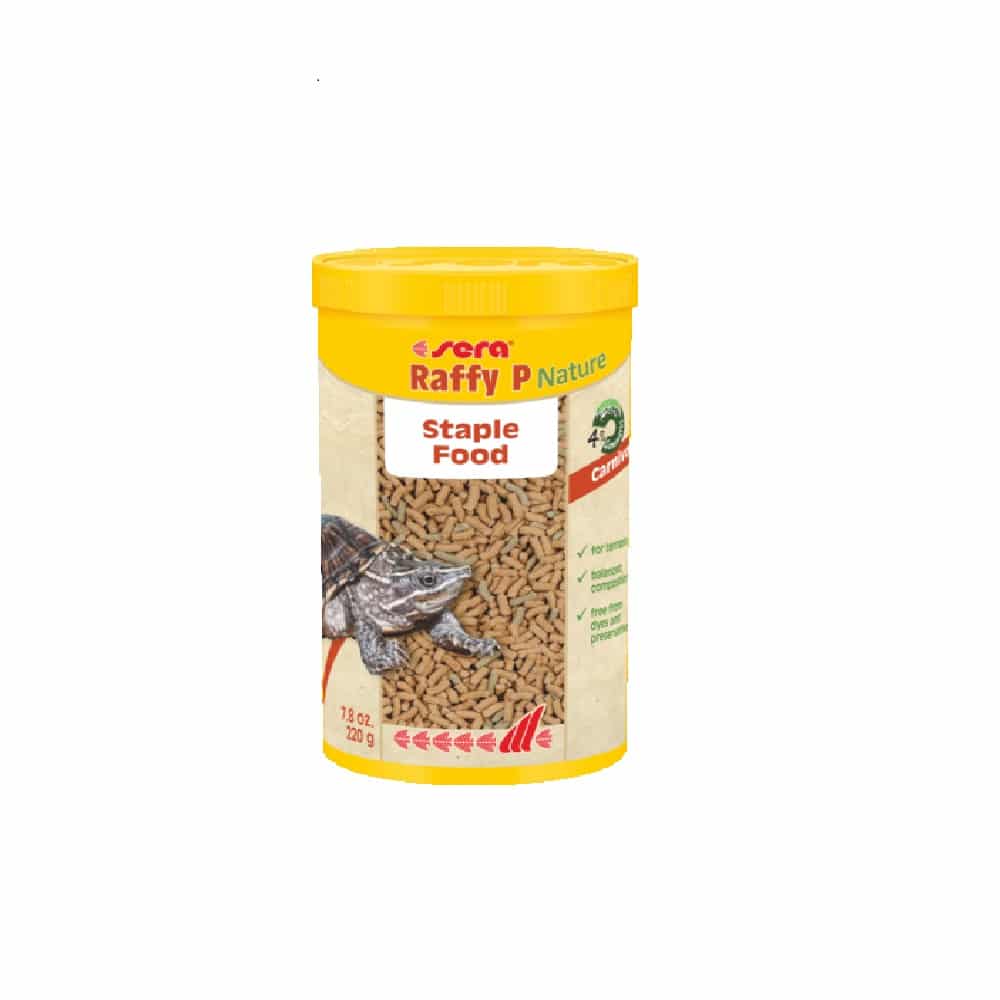 Sera Raffy P Nature is the staple food consisting of floating, gently manufactured granules for carnivorous reptiles such as terrapins.