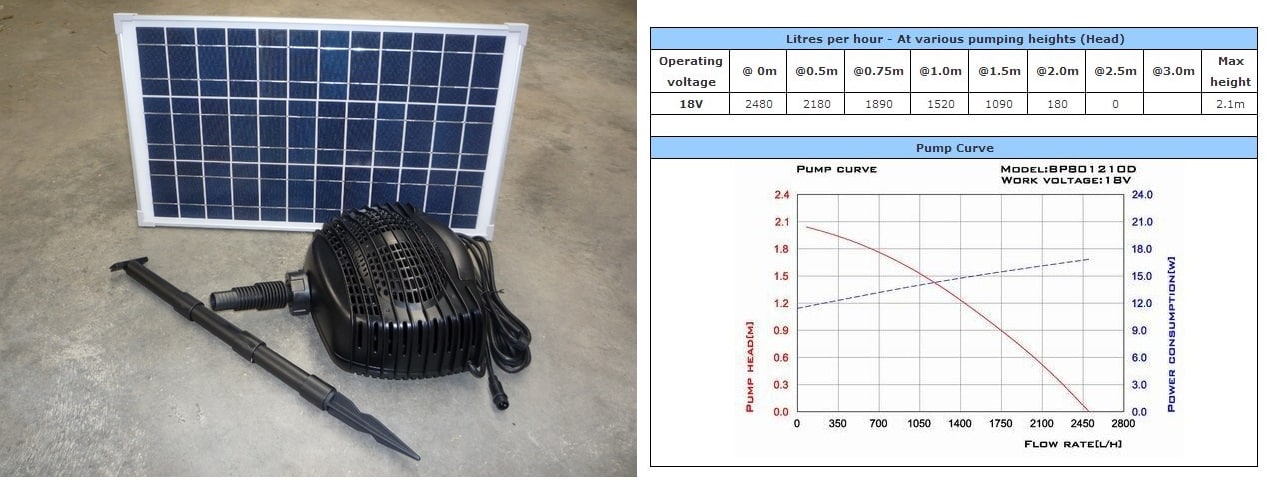 Commonly known as a Stream pump this SP25 unit can pump high volumes of water if height is kept low or to a minimum. Excellent for high volume water courses. As you can see by the pump curve below the higher the pumping height the less volume can be pumped. Limited maximum height of 2.1 metres. This pump also has added Dry protection cut-off. If the water levels drop too low the pump will stop automatically to alleviate burn-out.