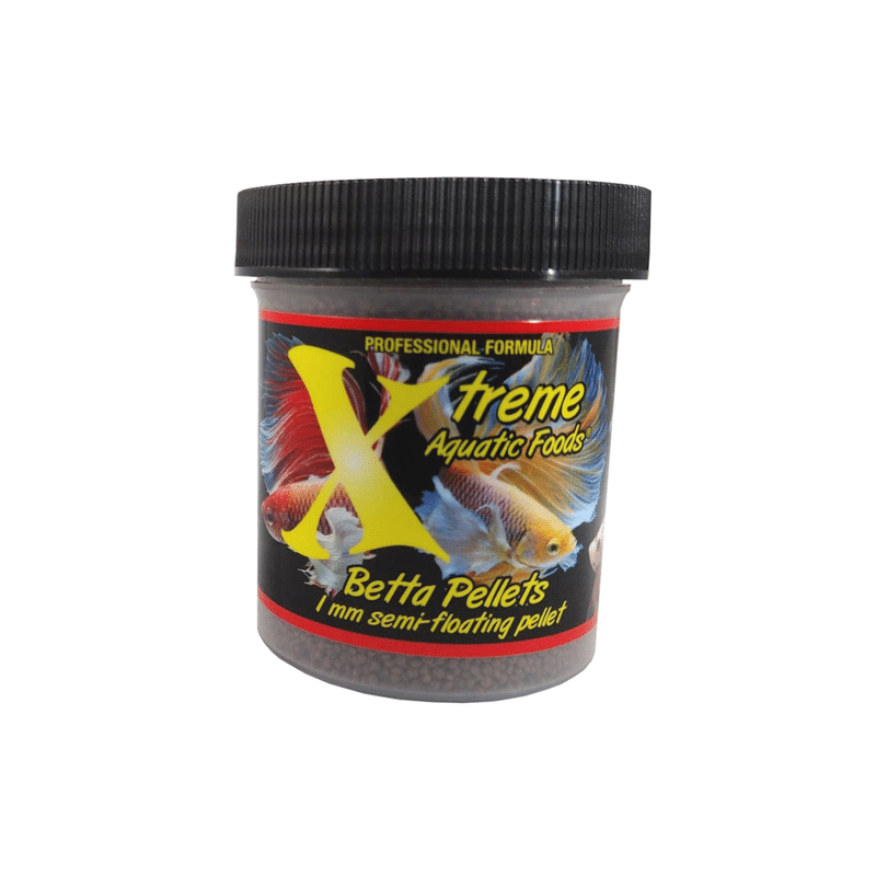 Xtreme’s floating pellets for bettas are now available in either 1mm or 1.5mm pellet sizes. Betta fish are extremely popular and are now available in an awesome range of colors, fin shapes and sizes. You will want to keep those colors vivid and ensure the overall health and vitality of the betta is maintained, this where Xtreme Betta Pellets can help. Xtreme Fish Food boost ALL natural fish colors overall, rather than highlighting one color over another. Xtreme uses four initial proteins in their Betta Pellets and a range of natural vitamins to help keep your prized Betta Fish fully colored and healthy. A handy .5cc portion spoon is included in each Betta Pellet jar, so you do not overfeed.