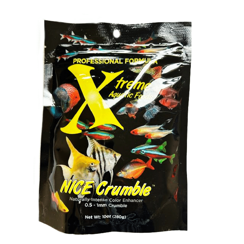 Our NICE Crumble is a high-protein food, so a little goes a long way when feeding. Xtreme offers this crumble food in their new resealable zipper pouches – easy to get to the food with your fingers and easy to seal the pouch after every use to help keep the fish food fresh and dry. The pouches even have a clear bottom gusset, making it easy to see what’s inside.