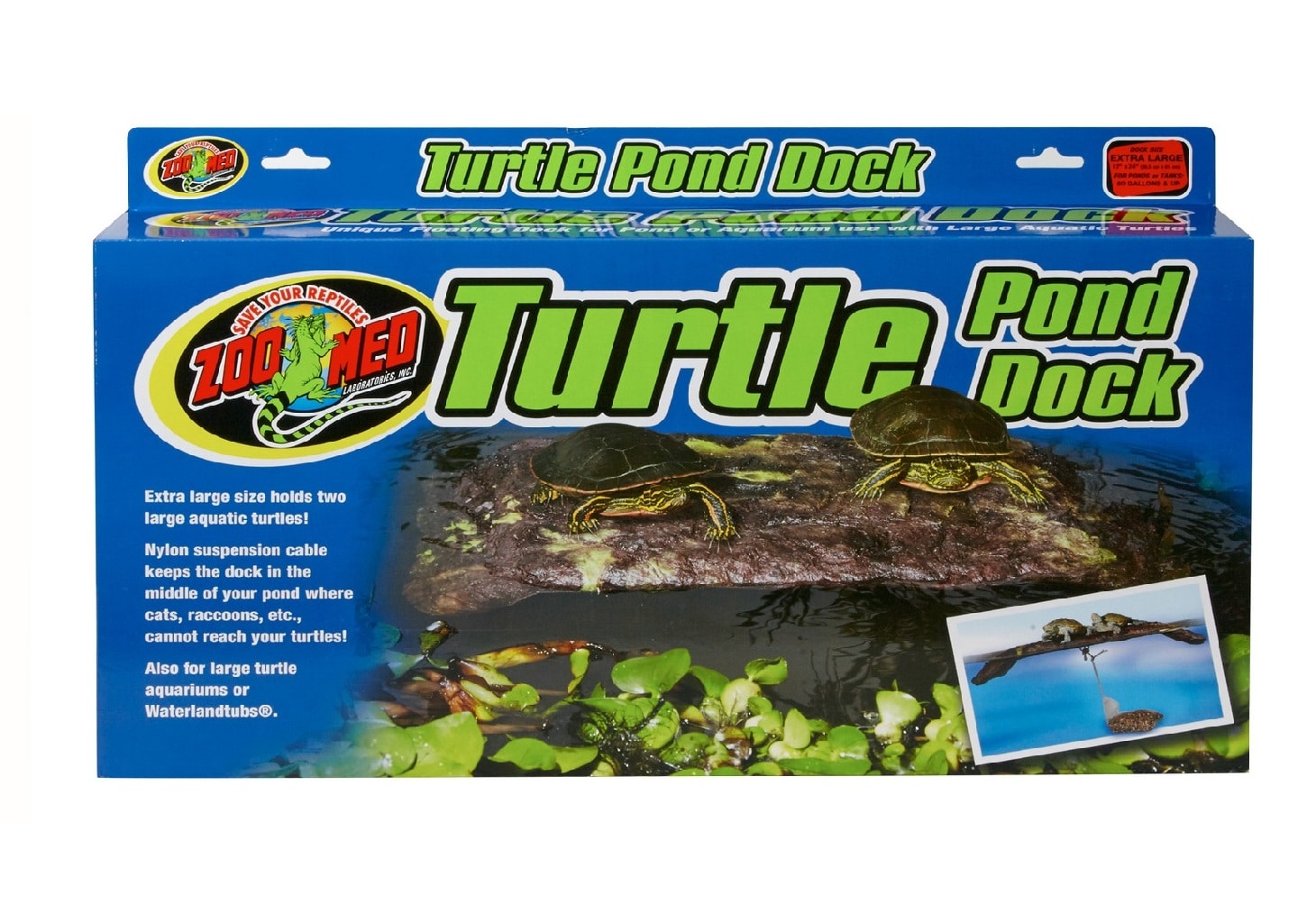 The Zoo Med Turtle Pond Dock is an unique floating dock for aquatic turtles to bask on. A self-leveling feature automatically adjusts to all water levels. The submerged ramp allows Turtles easy access to a dry basking area for maximum exposure to heat and UVB lamps.